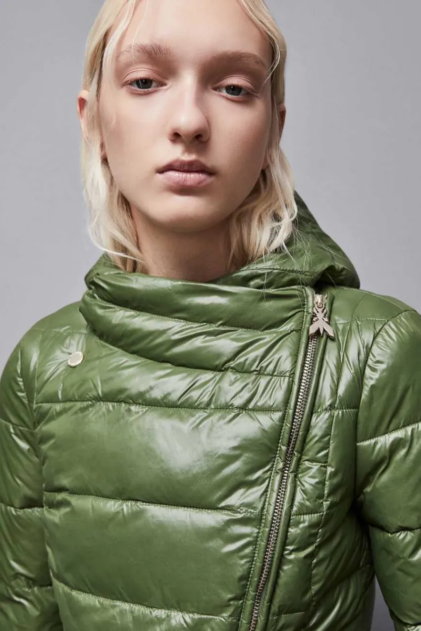 Die ultraleichte Daunenjacke mit Kapuze von Patrizia Pepe hat eine weiche Wattierung mit Dauneneffekt. Ein perfektes Modell, um sich warmzuhalten und stilvoll einzukuscheln.