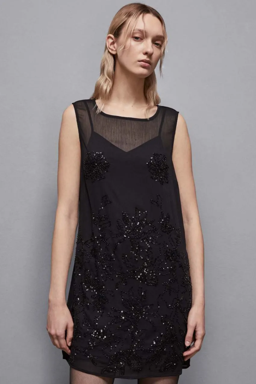 Die essenziellen Linien des Kleides sind mit ultramodernen Glam-Details veredelt: Cut-out, Wickeldetail vorne und flache Fly.