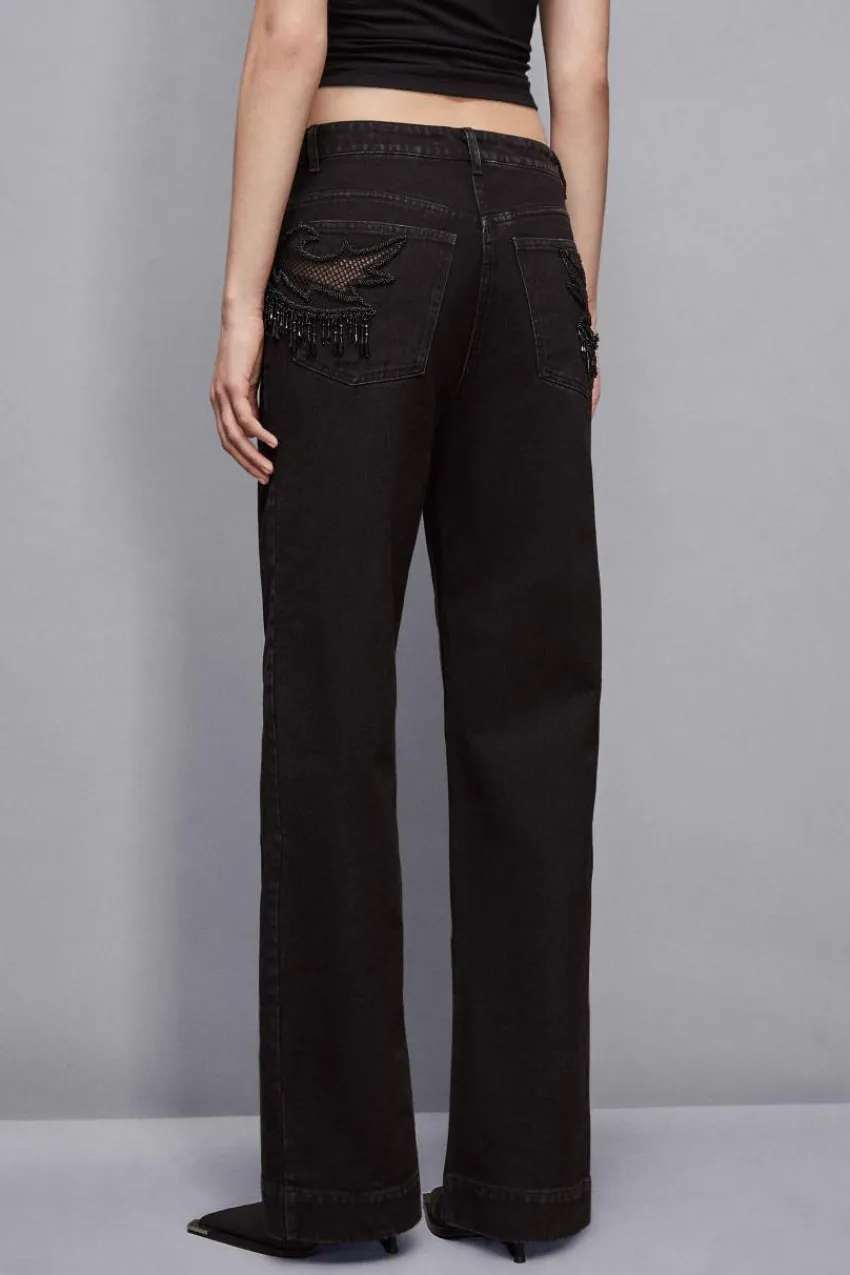 Diese Jeans mit Schmuckintarsien und einer Stickerei mit Pailletten und Perlen auf der Hüfte wird dein neues Statement-…