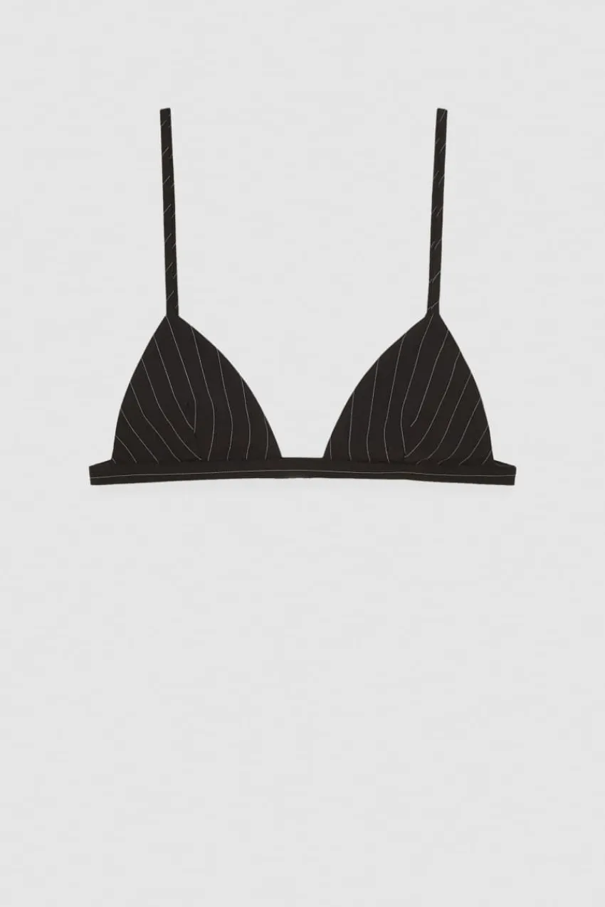 Sei mutig mit deinem Look. Der Flanell-BH mit Nadelstreifen passt perfekt zu Oversize-Blazern, um verführerische androgyne Outfits zu kreieren. Der Verschluss ist mit einem Fly-Detail versehen.