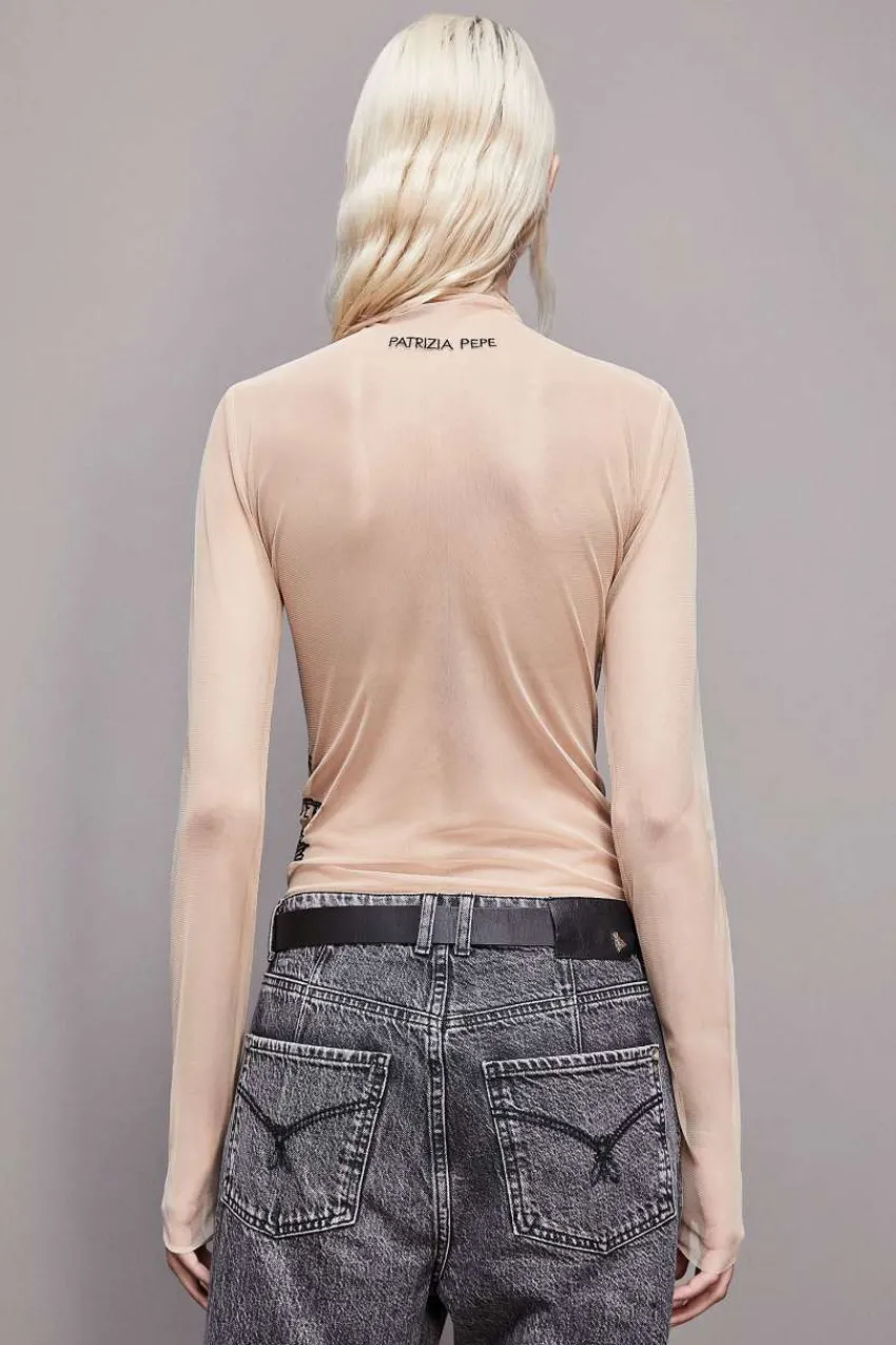 Originelles Body-Shirt aus Tüll mit Stickerei in einer Kontrastfarbe. Patrizia Pepe hat hier einen wunderbaren Eye-Catcher entworfen. Trage sie, um dich jung und modisch zu fühlen.