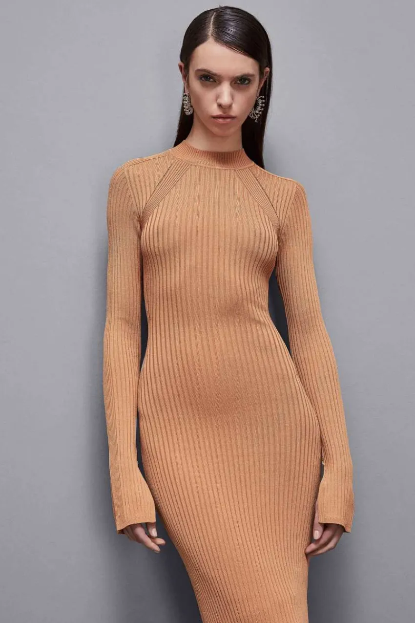 Patrizia Pepe präsentiert dieses Kleid aus einer Viskosemischung mit Rippenstrick und schmaler Passform, das mit einer …