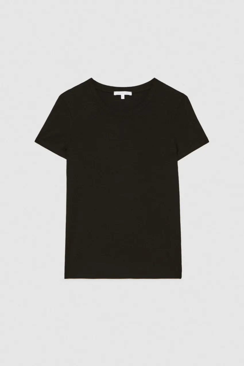 Dieses zeitlose Jersey-T-Shirt lässt sich perfekt mit Jogginghosen oder Jeans der Saison kombinieren und sorgt für einen entspannten Look.